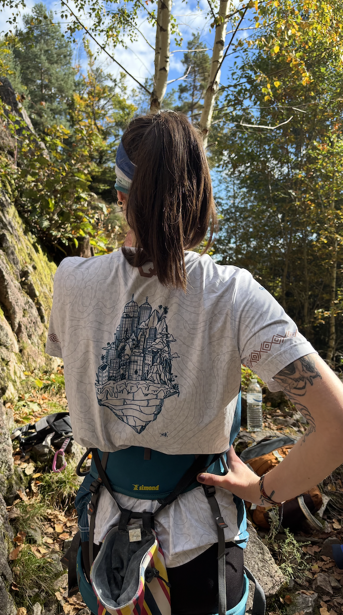 Chaque t-shirt acheté contribue directement à soutenir Titouan Leduc dans ses futurs projets d’escalade.